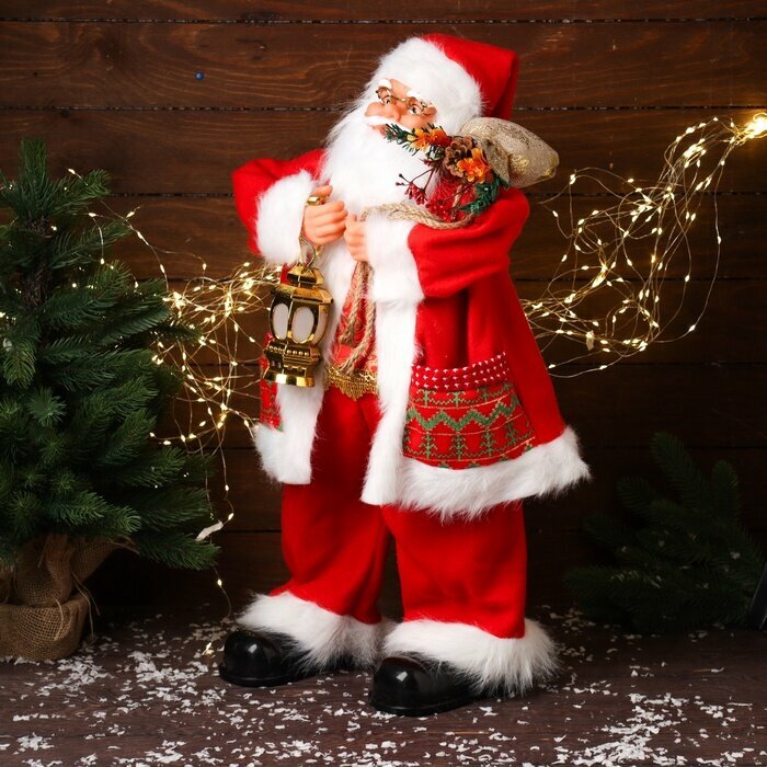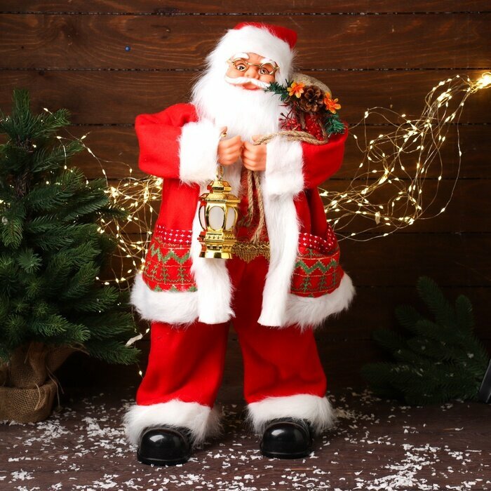 Дед Мороз под ёлку «Зимнее волшебство. Красная шубка, в очках, с фонариком», двигается, с подсветкой, 70 см