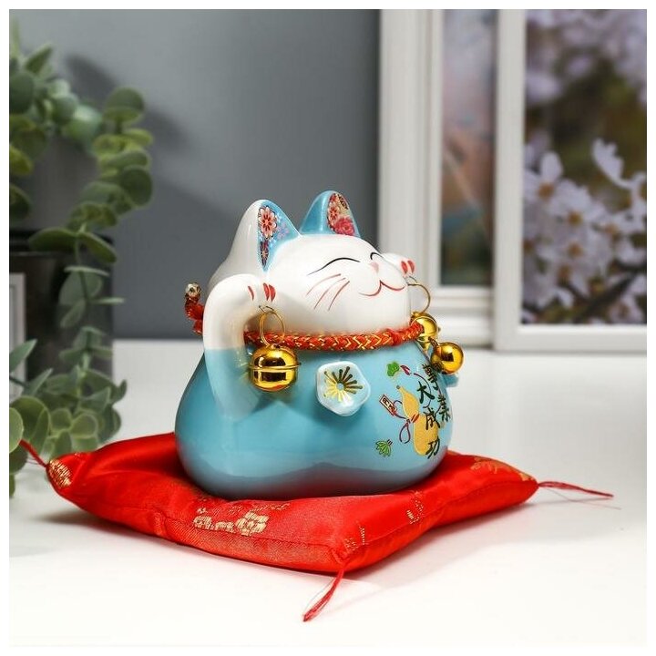 Отзывы на Сувенир керамика копилка "Голубой кот Манэки-нэко с колокольчиками" 11,5х11,5х9,5 см