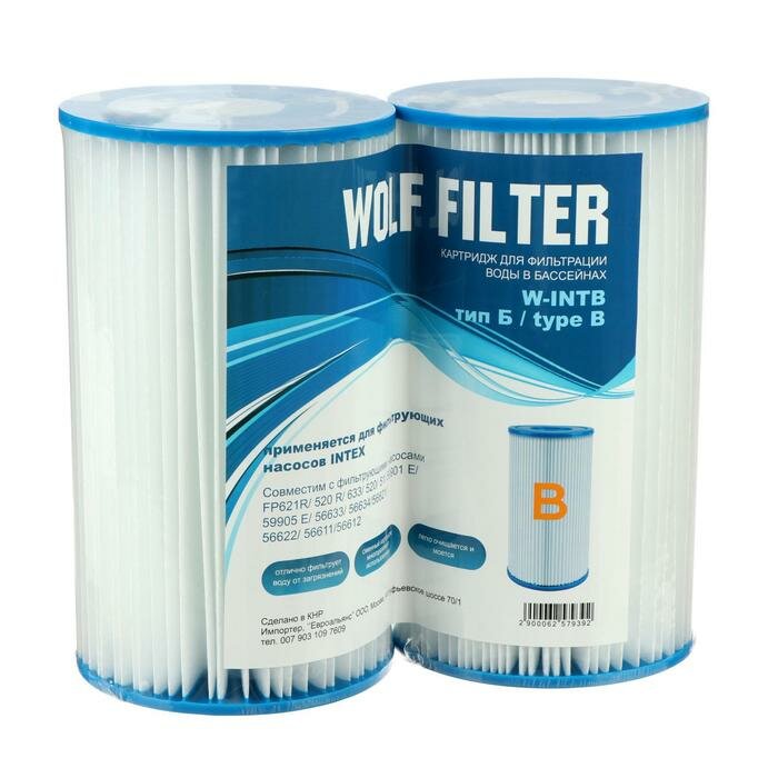 WOLF FILTER Картридж для очистки воды в бассейнах для фильтрующих насосов INTEX, тип B, 2 шт. информация: