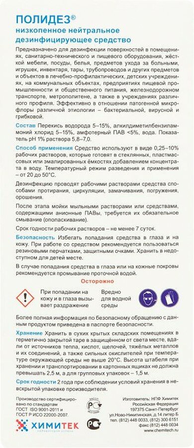 Профессиональная химия химитек полидез 1л, дезинф.ср-во с моющим эффектом