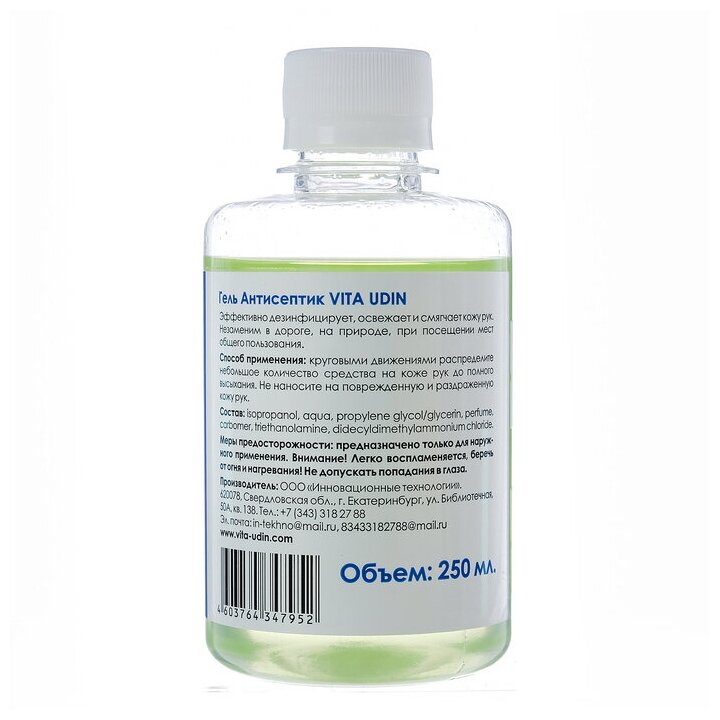 Антисептик VITA UDIN, для рук, гель, 250 мл информация: