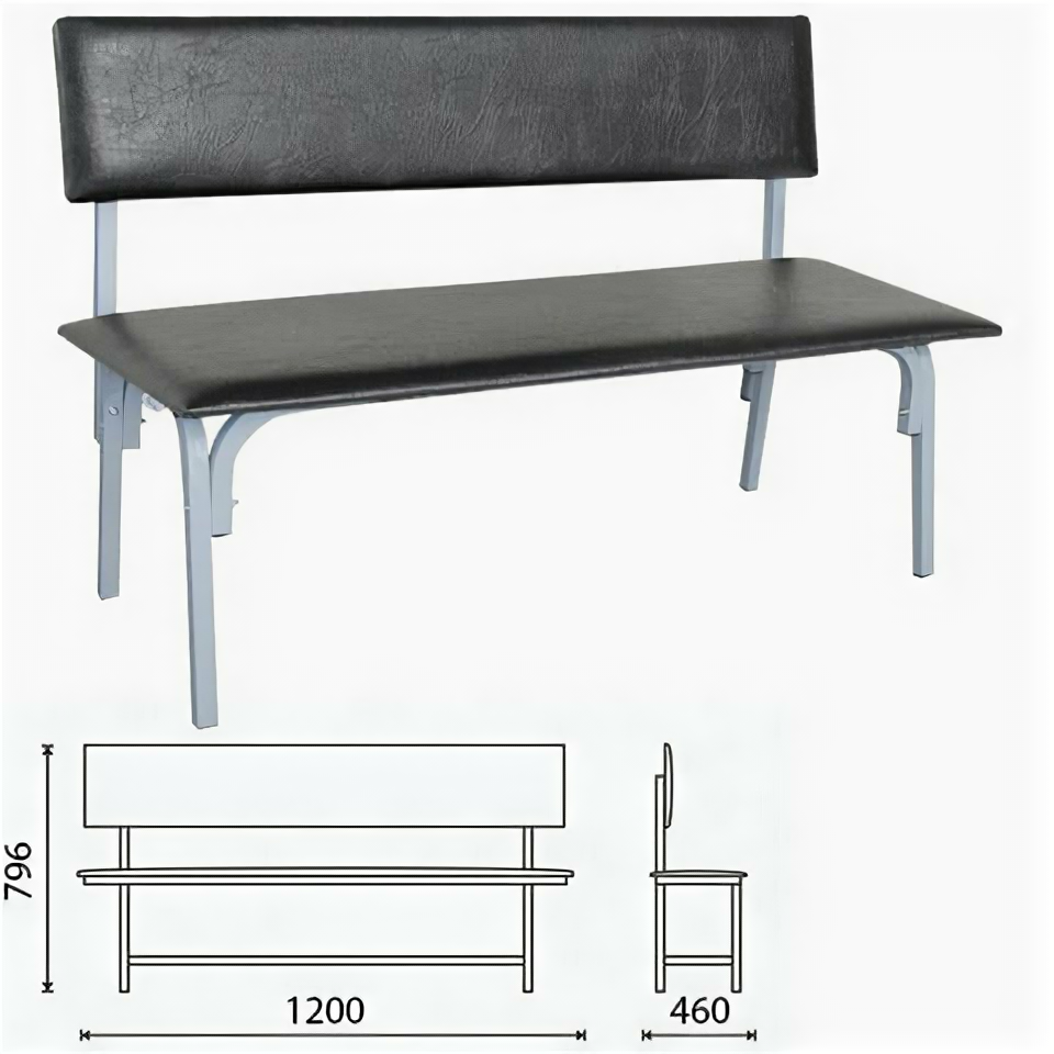 Банкетка со спинкой "Астрид", 1200х470х796 мм, серый каркас, кожзам черный информация: