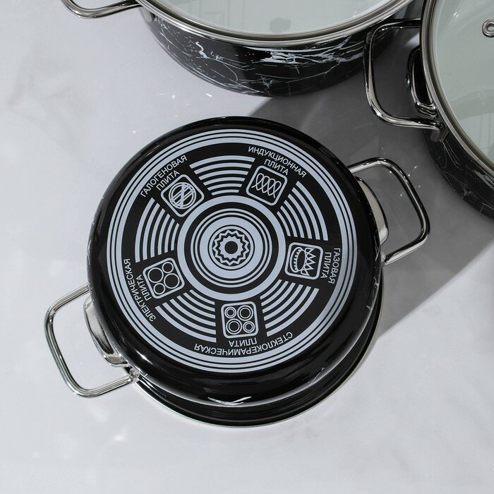 10 цен на Керченская эмаль Набор кастрюль «Чёрный мрамор», 3 шт: 1,9 л, 2,5 л, 3,7 л