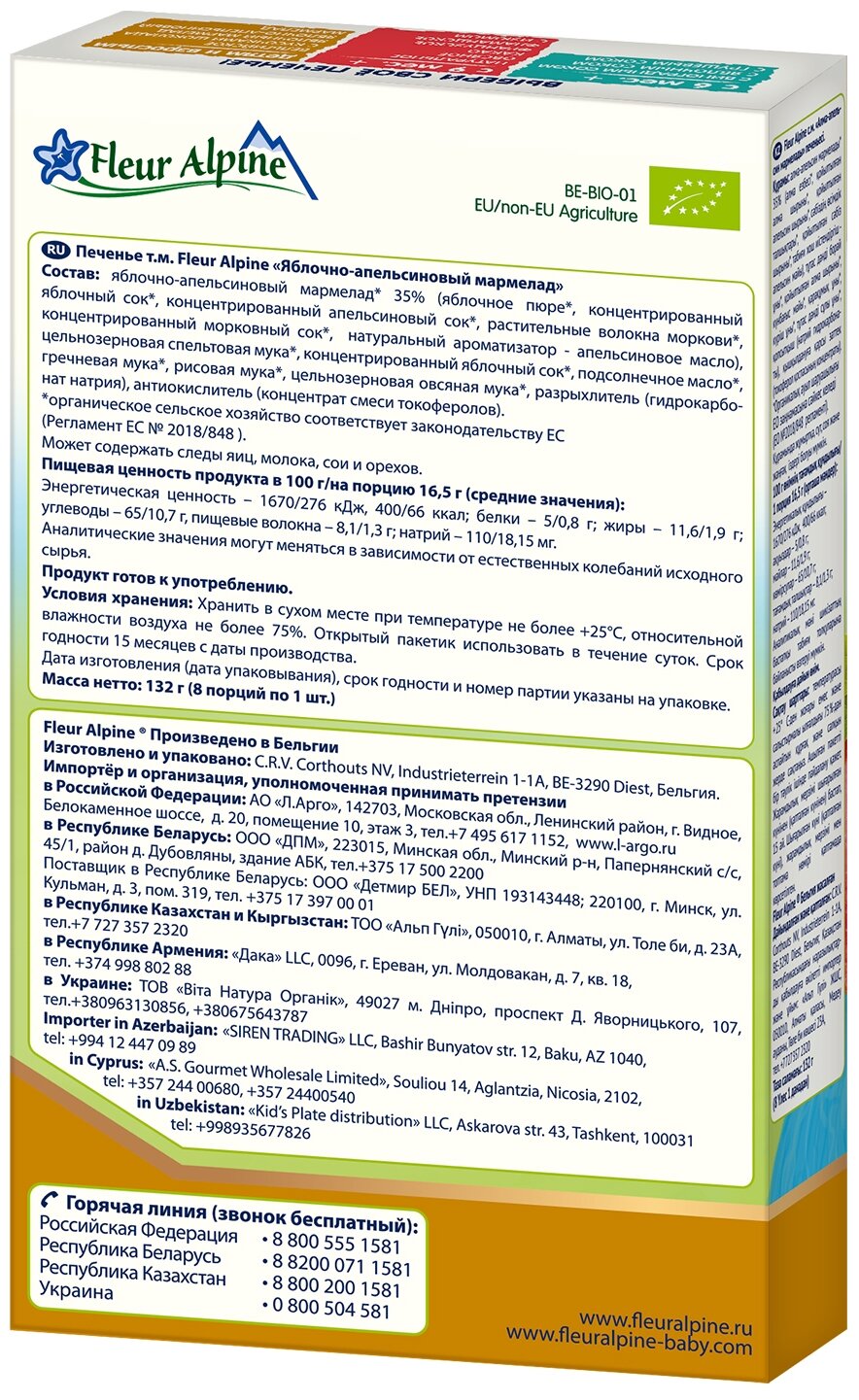 Флёр Альпин - печенье "Яблочно-апельсиновый мармелад", 132/8 информация: