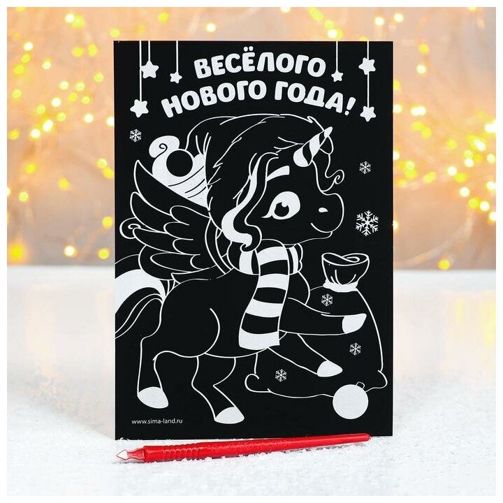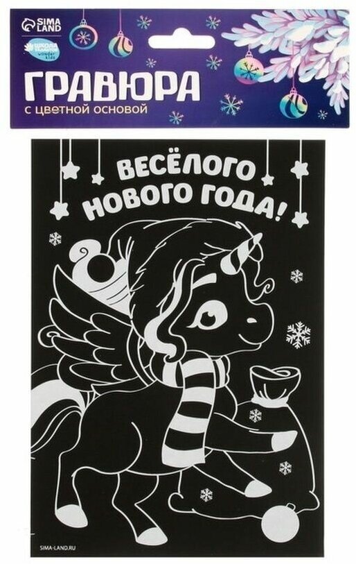Школа талантов Гравюра "Новогодний единорог" с цветной основой информация:
