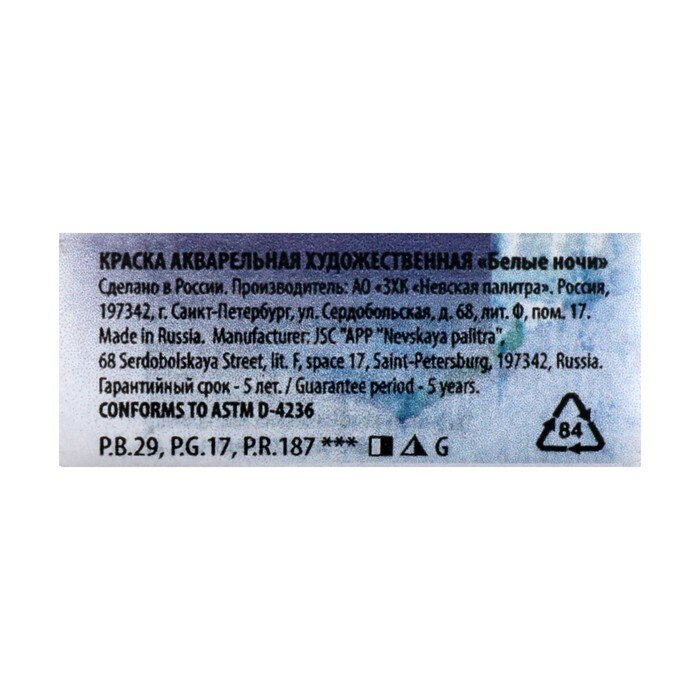 Завод художественных красок «Невская палитра» Акварель художественная в кювете 2.5 мм, ЗХК "Белые ночи", фиолетовая дымка информация: