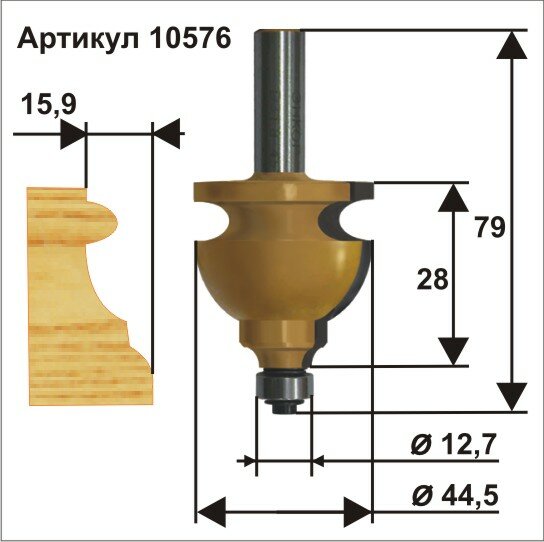 10576 Фреза кромочная фигурная (44.5х28 мм; хвостовик 12 мм) Энкор информация: