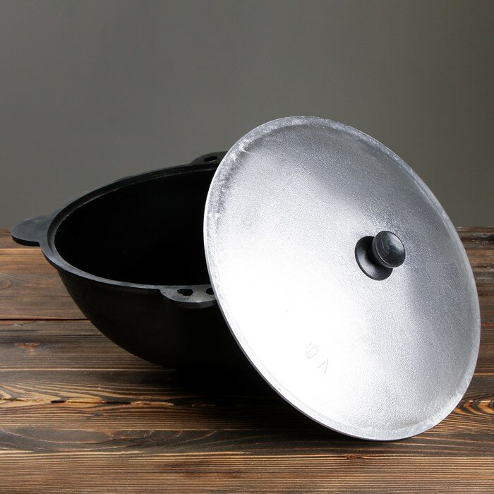 10 цен на Шафран Казан чугунный, 10 л, круглое дно, алюминиевая крышка
