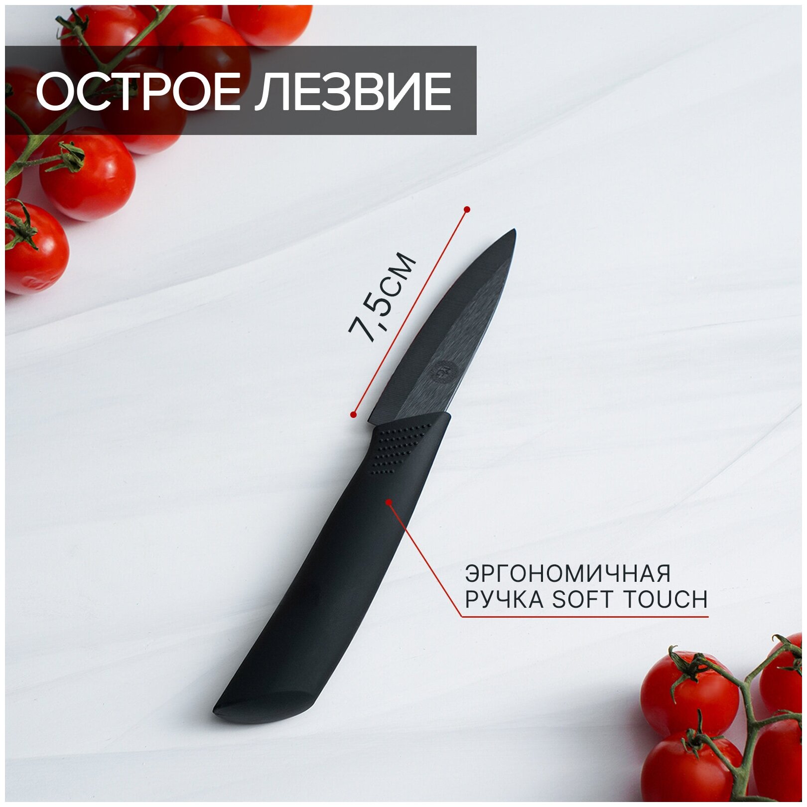 Нож кухонный керамический Black, лезвие 7.5 см, ручка soft-touch, цвет чёрный 936 ₽