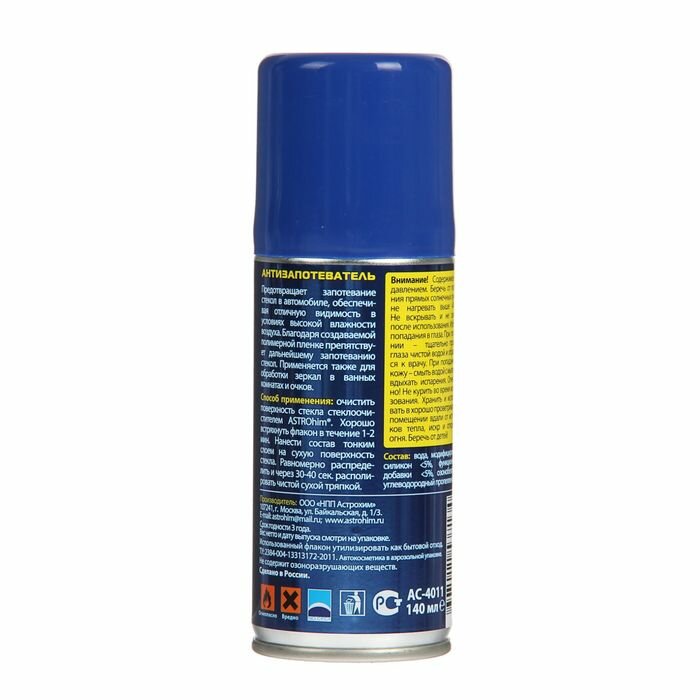 Astrohim Антизапотеватель стекол Astrohim, 140 мл, аэрозоль, АС - 4011 информация:
