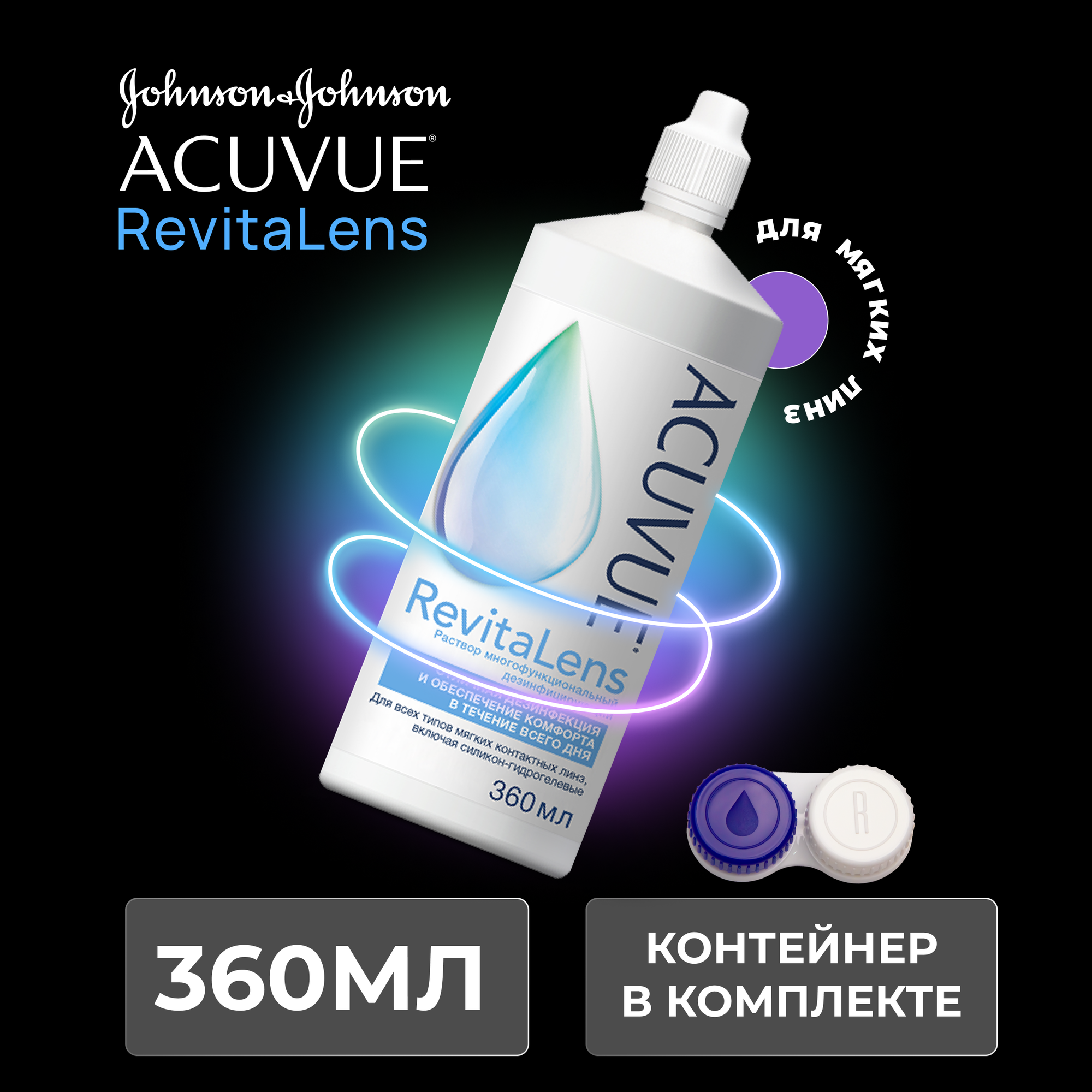 Многоцелевой раствор для контактных линз ACUVUE Revitalens (Акувью Ревиталенс) 360 мл, с контейнером для линз