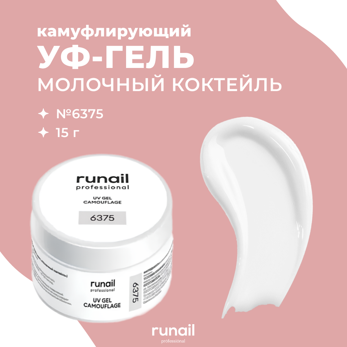 Отзывы на RuNail Professional / Камуфлирующий однофазный УФ-гель лак для наращивания ногтей цвет: Молочный коктейль, 15 г № 6375