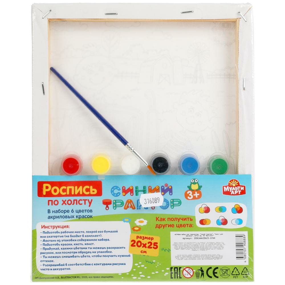 10 цен на Набор д/тв-ва, Синий Трактор холст для росписи по контуру 20x25, MultiArt 200CANV20X25-STR4