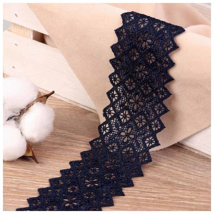 10 цен на Кружево гипюровое, 50 мм ? 6,5 0,5 м, цвет тёмно-синий Арт Узор 5128692 .