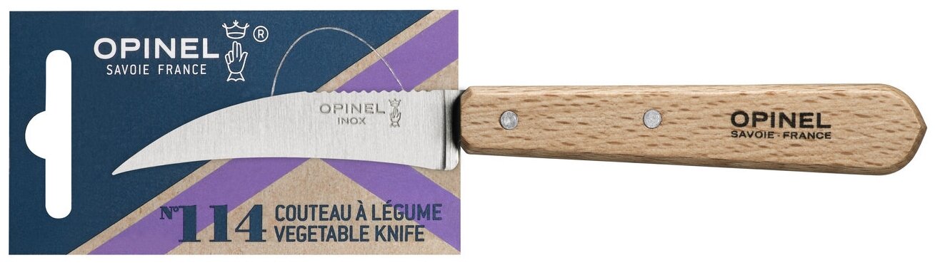 Нож для чистки овощей Opinel №115, деревянная рукоять, нержавеющая сталь, блистер, 001928