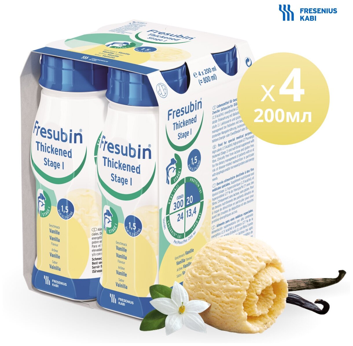Фрезубин сгущенный Ваниль, уровень 1, 200 мл/300 ккал - упаковка 4 шт.