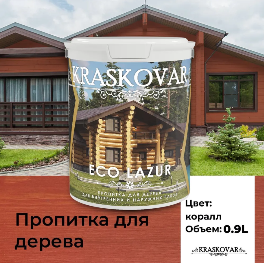 Пропитка для дерева Kraskovar Eco Lazur, коралл 0,9л информация: