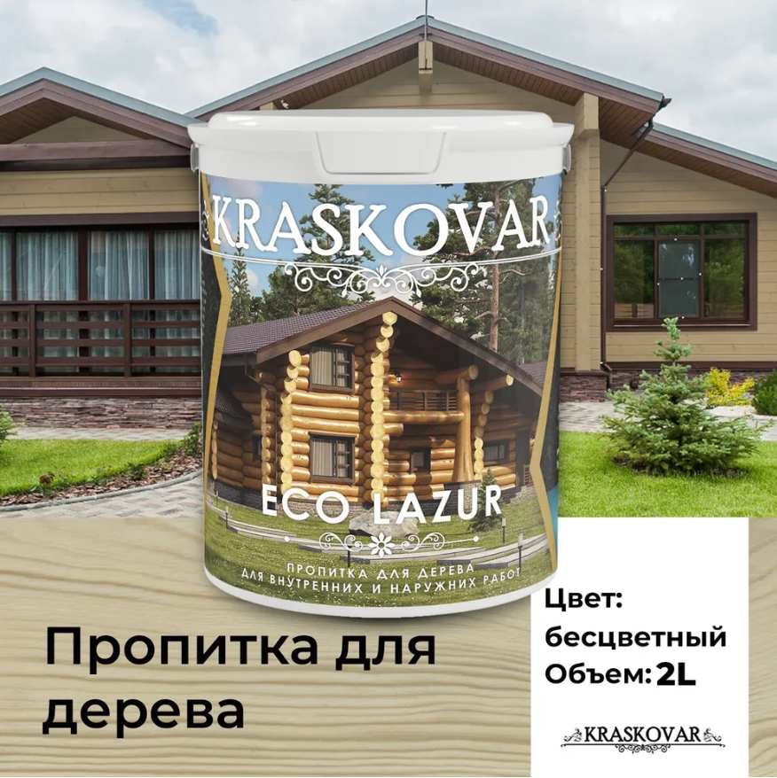 Пропитка для дерева Kraskovar Eco Lazur, бесцветный 2л информация: