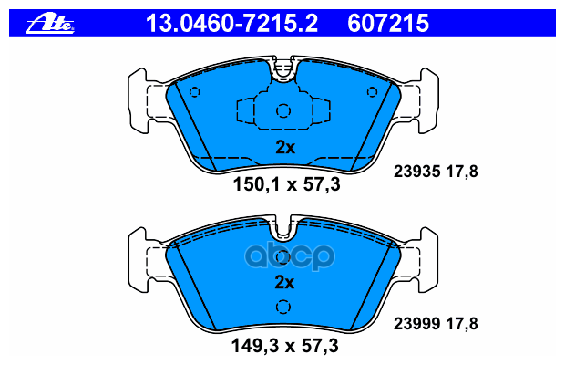ATE 13.0460-7215.2 колодки ПЕР BMW E81/E87/E90 1.8/2.0D/1.8/2.0 04-
