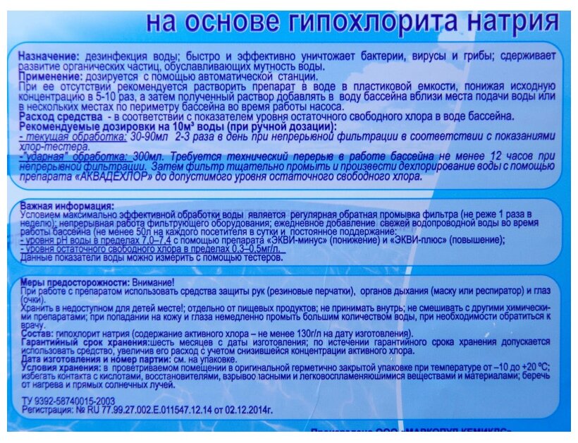 Жидкий хлор для дезинфекции воды Маркопул Кемиклс эмовекс-новая формула М34 2л .
