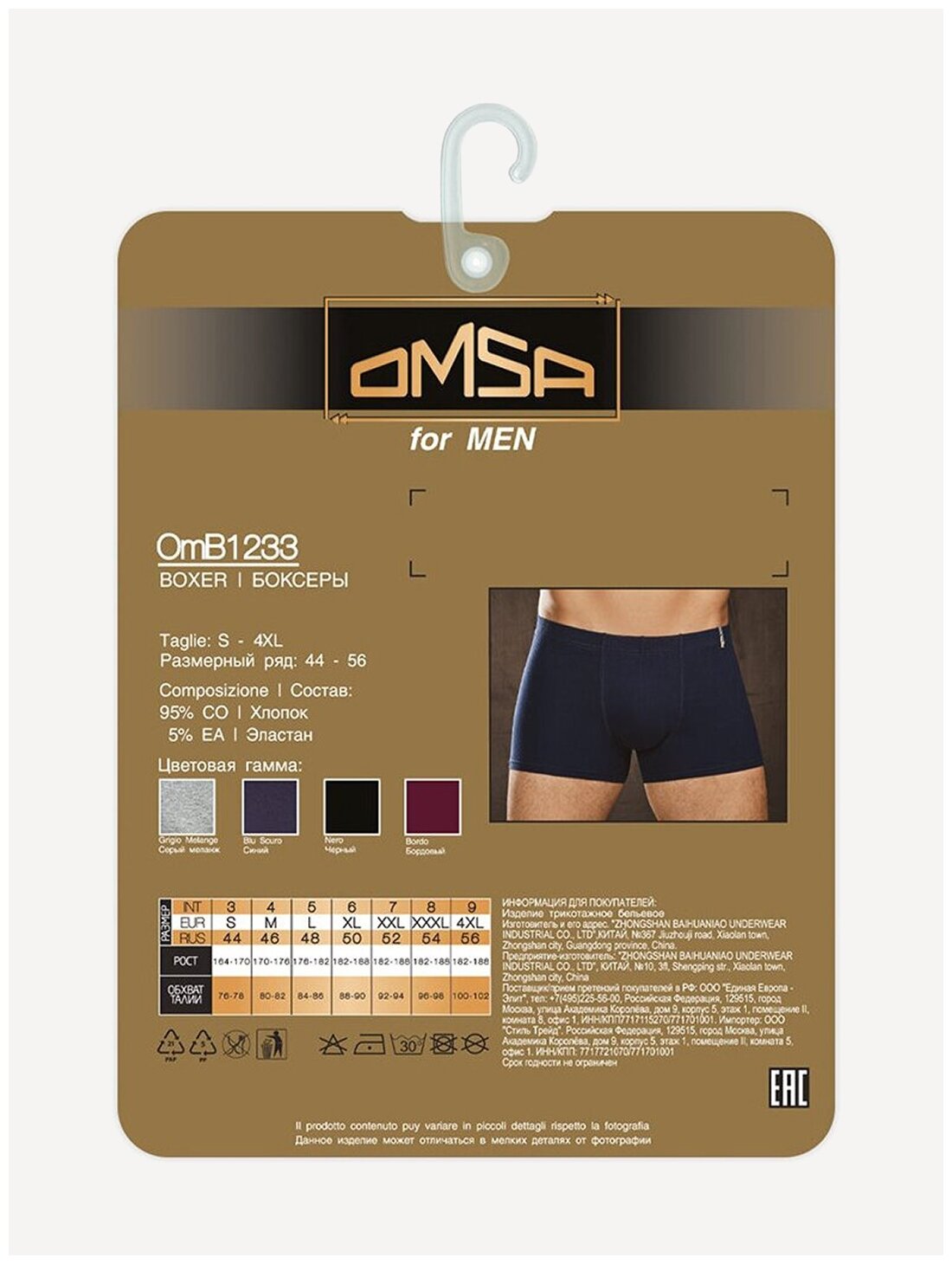 Белье мужское Omsa for men OmB 1233 Боксеры с закрытой резинкой, COTTON Blu Scuro 46(M) информация: