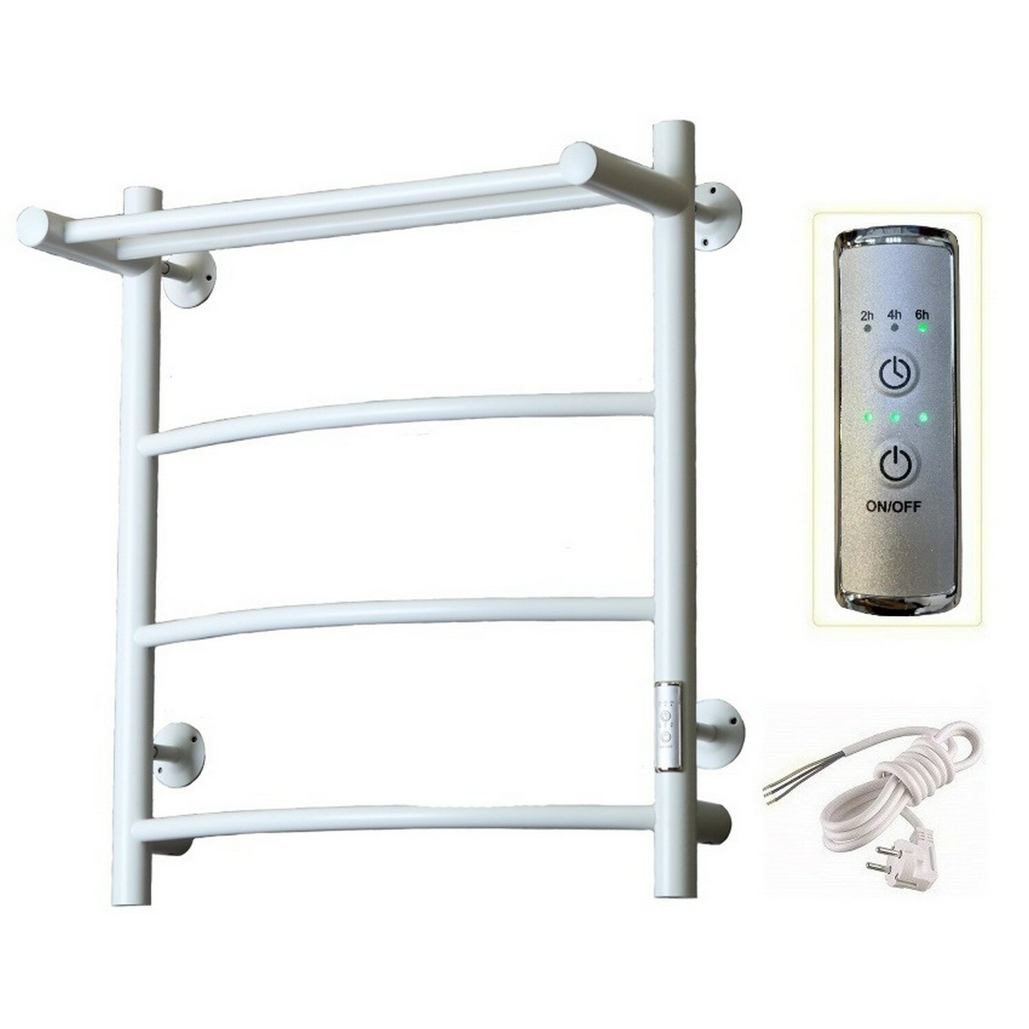 Полотенцесушитель электрический ЛЦ 60х50 С полкой, 4 перекладины, дуга, белый (универсальное подключение, таймер, 350 Вт) ZOX информация: