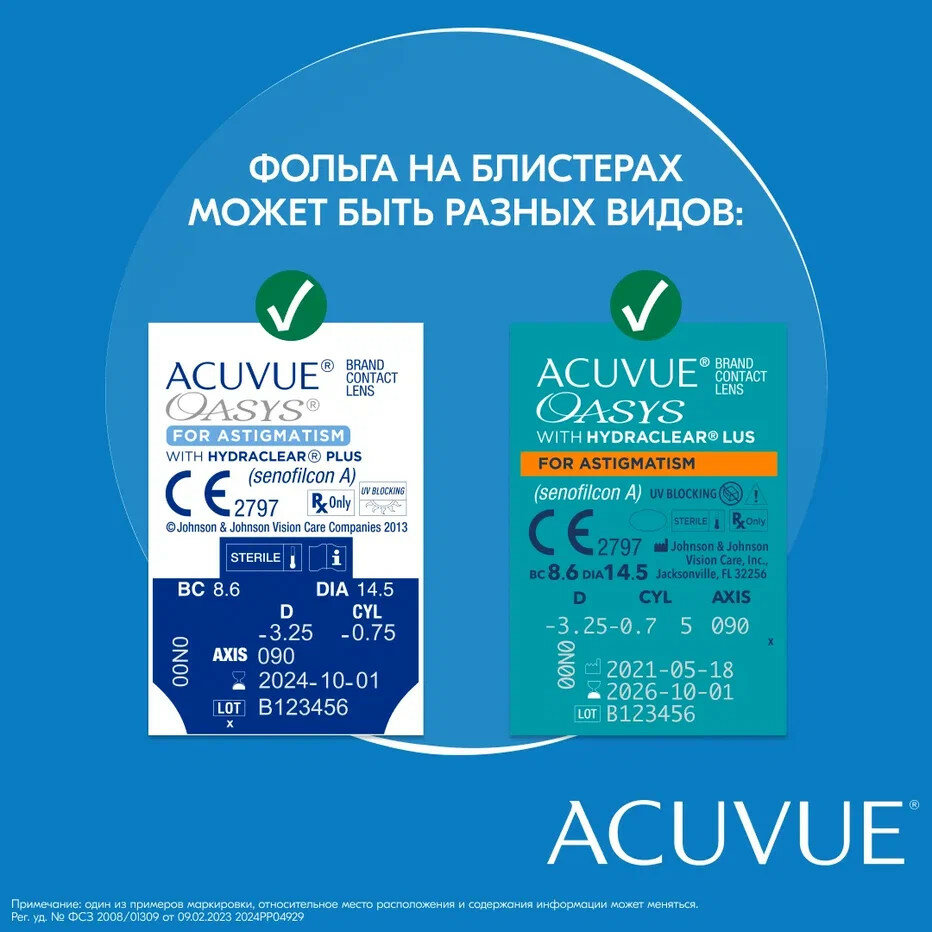 Отзывы на Астигматические линзы ACUVUE OASYS with Hydraclear Plus for Astigmatism (6 линз) Ось 100, Оптическая сила цилиндра -0.75 -0.75 R 8.6, двухнедельные, прозрачные