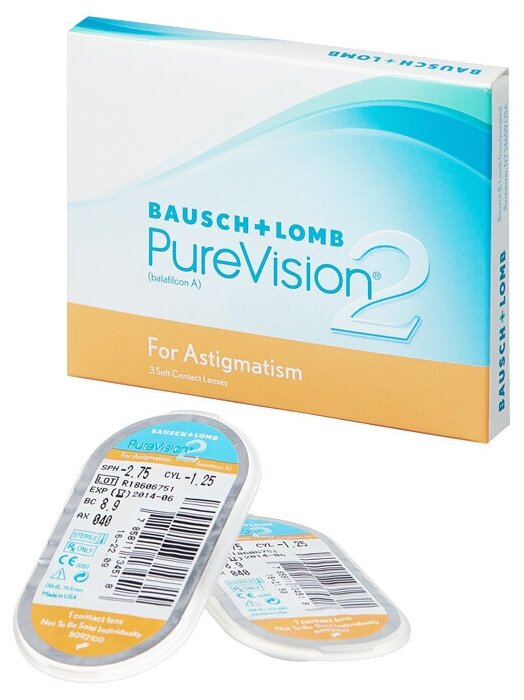 Контактные линзы Bausch & Lomb, PureVision2 HD for Astigmatism, Ежемесячные, -0,00, -1,25 / 010 / 14,5 / 8,9 / 3 шт.