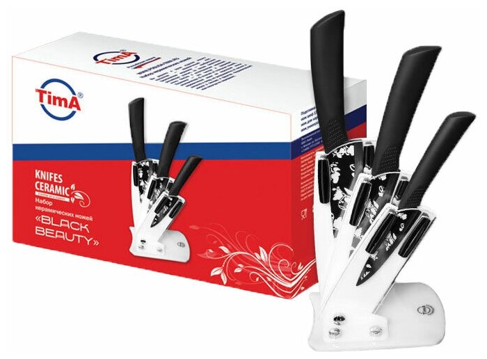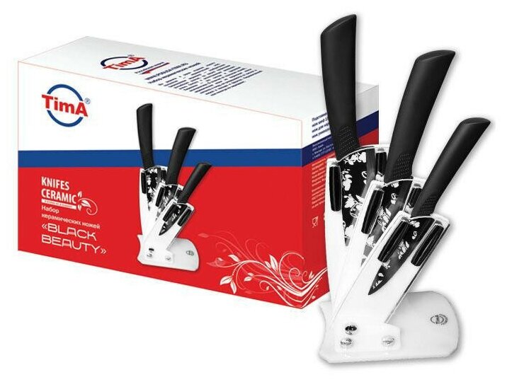 Набор керамических ножей TimA KFH-800 Black & Beauty на подставке