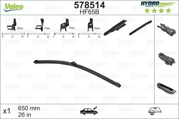 578514 VALEO Щетка стеклоочистителя HydroConnect Butterfly бескаркасная 650/26` (универсальные адаптеры )