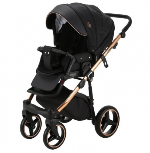 Детская универсальная коляска Adamex LANTI Deluxe 2 в 1 SD-110 (светло-бежевая экокожа, черная экокожа)