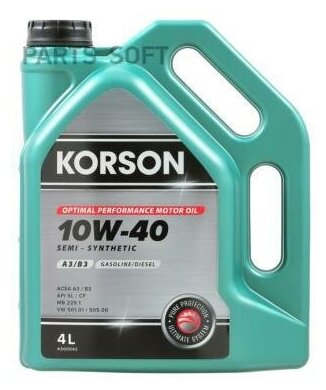 KORSON KS00042 Масло моторное 10W-40 A3/B3 4L (полусинтетическое) 1шт