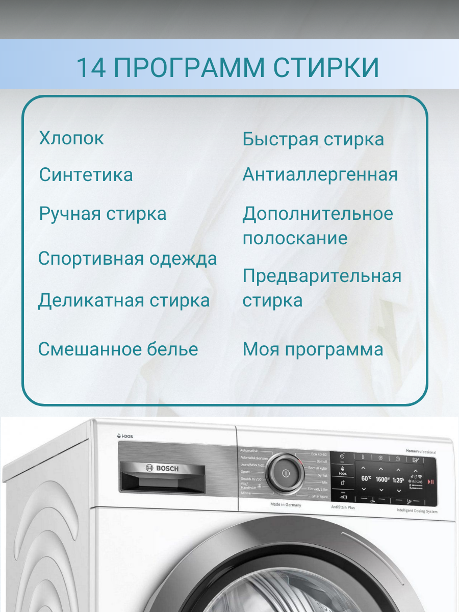 Стиральная машина Bosch WAXH2E0LSN, 10 кг информация: