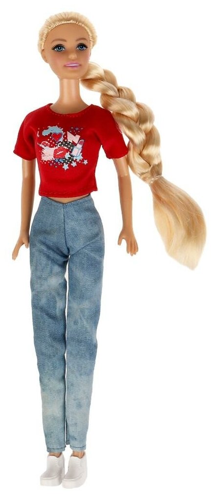 Кукла Карапуз София 29см бесшарнирная, в футболке с принтом и джинсах