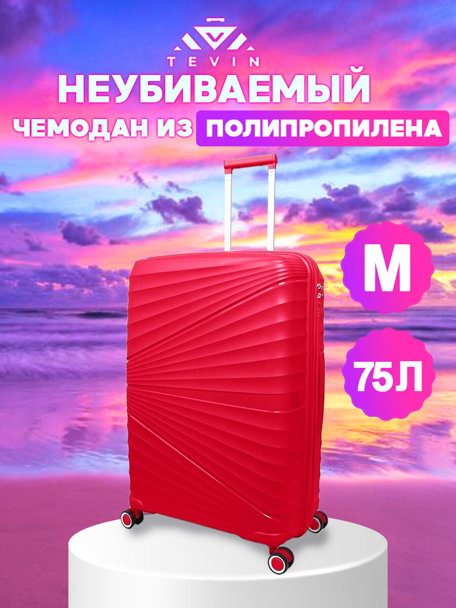 10 цен на Чемодан на колесах дорожный средний багаж для путешествий женский m Тевин размер М 64 см 62 л легкий 3.2 кг прочный полипропилен Красный лучи