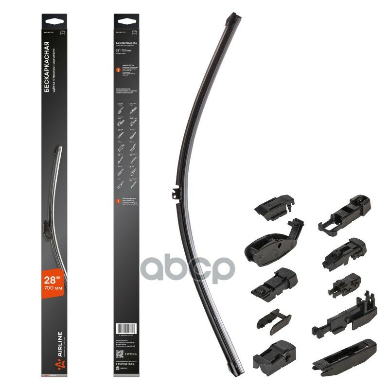 AIRLINE / awbbk700 / Щетка стеклоочистителя 700 мм (28) бескаркасная, 10 адаптеров"