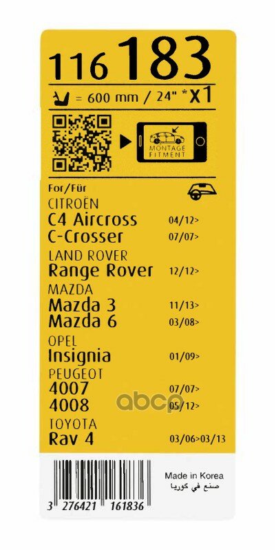 Щетка стек-ля 600x1 Chevrolet Cruze, Toyota Rav4, Peugeot 4007 / 4008 12] SWF 116183 2 008 ₽