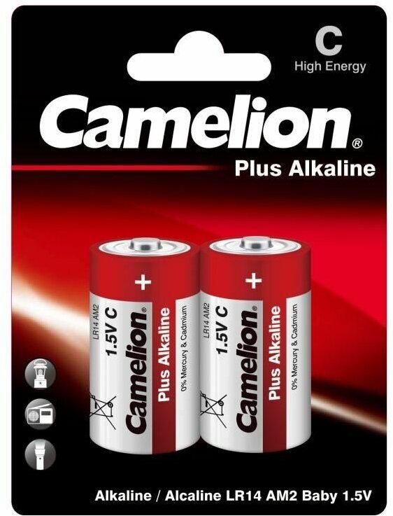 Элемент питания алкалиновый C/LR14 1.5В Plus Alkaline LR14-BP2 BL-2 (блист.2шт) Camelion 1653 информация: