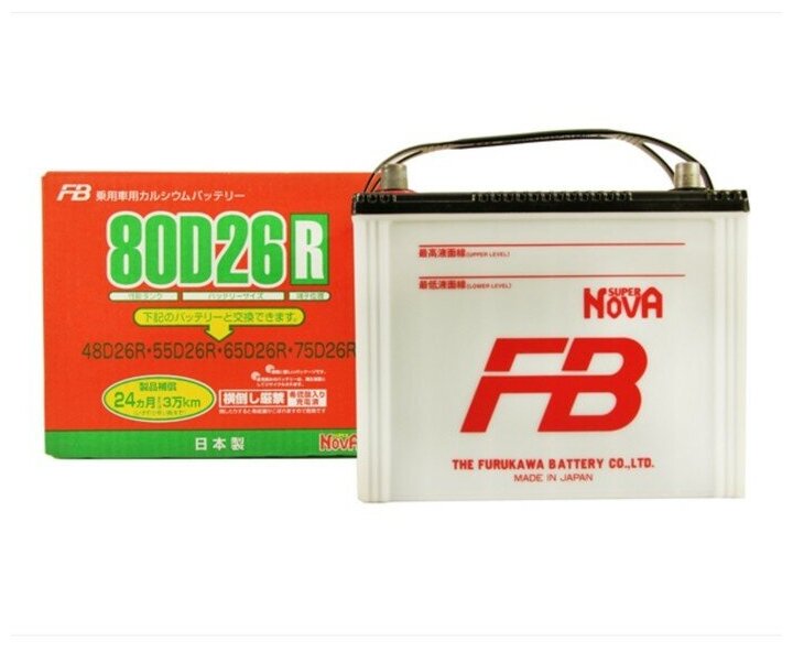 Аккумулятор FURUKAWA BATTERY FB SUPER NOVA арт. 80D26R, Ёмкость 68 Ah, пусковой ток 700 А, 257x170x227