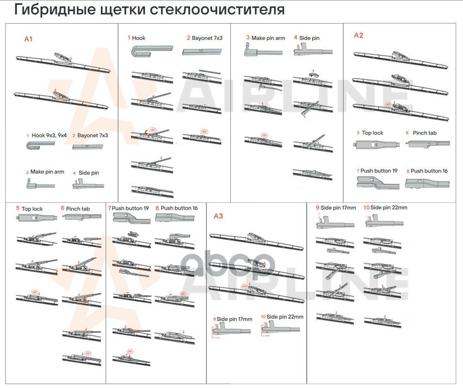 10 цен на Щетка Стеклоочистителя 550 Мм (22) Гибридная, 8 Адаптеров Awb-H-550 AIRLINE арт. AWBH550