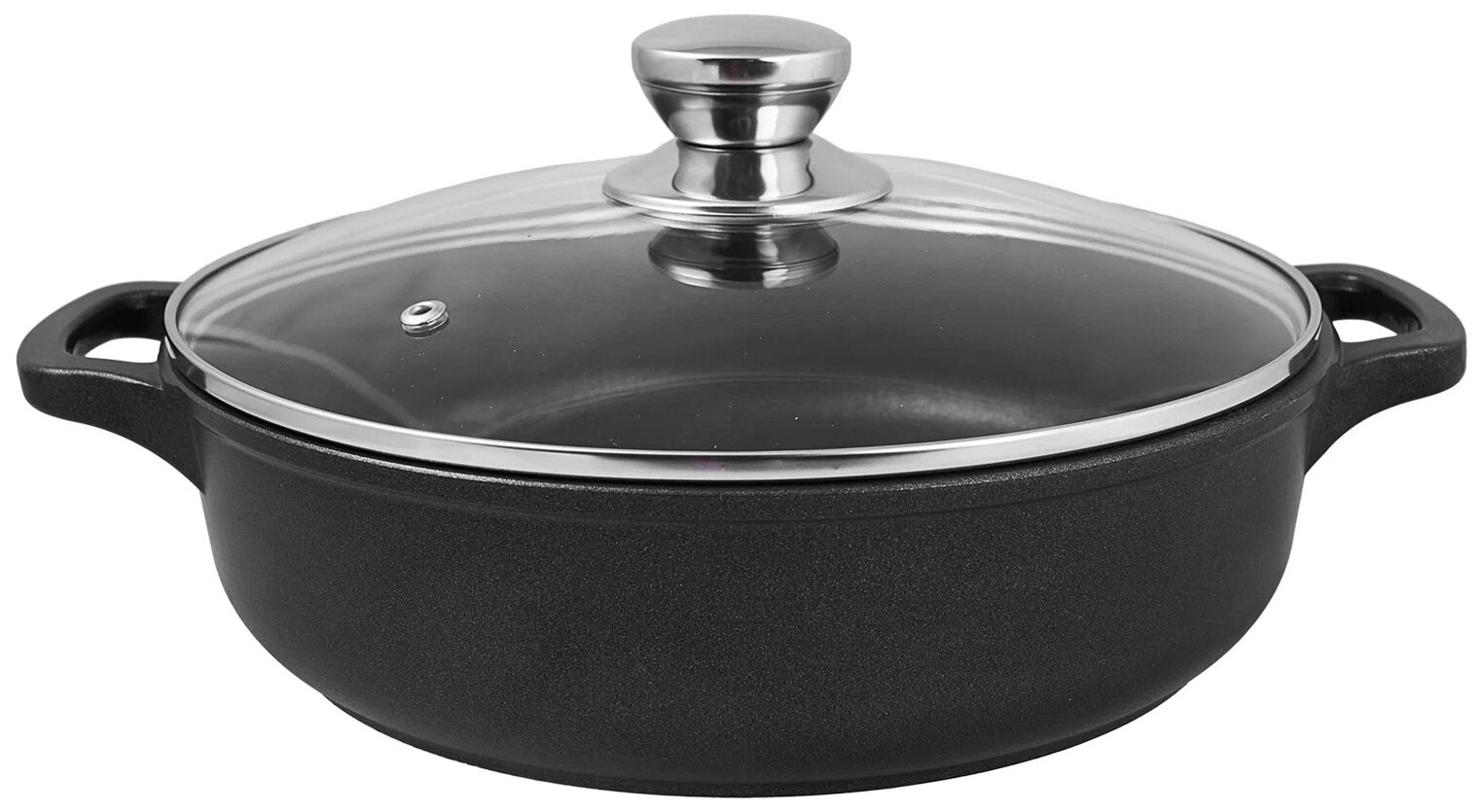 Сковорода-жаровня Традиция Комфорт литая со стеклянной крышкой, с крышкой, диаметр 26 см