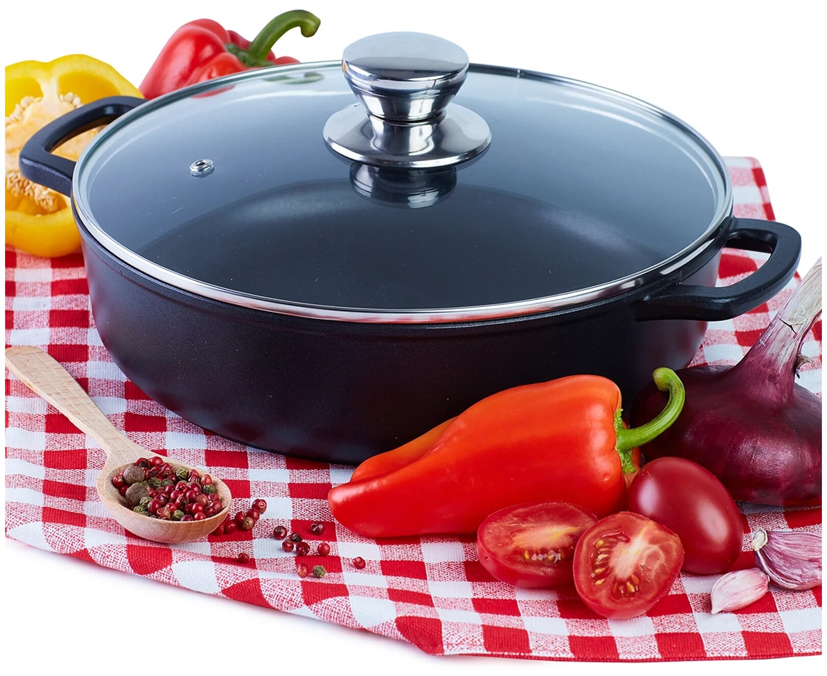 Жаровня антипригарная литая 24см со стеклянной крышкой Комфорт ТМ Традиция готовить с любовью
