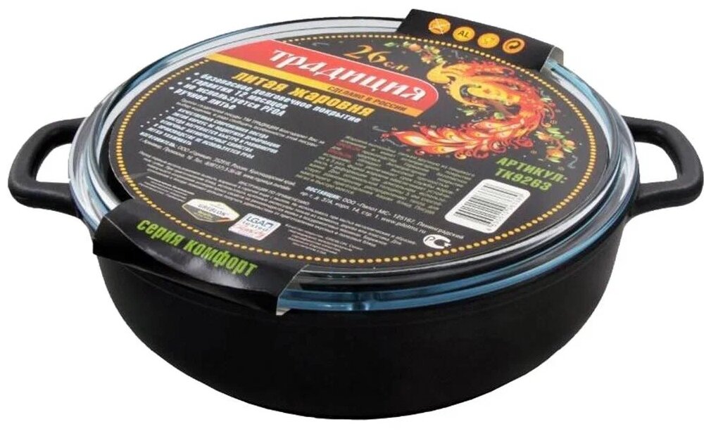 Жаровня Традиция Комфорт литая 24 см со стеклянной крышкой информация: