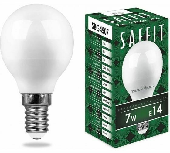 Светодиодная лампа SAFFIT SBG4507 Шарик E14 7W 2700K 55034 информация:
