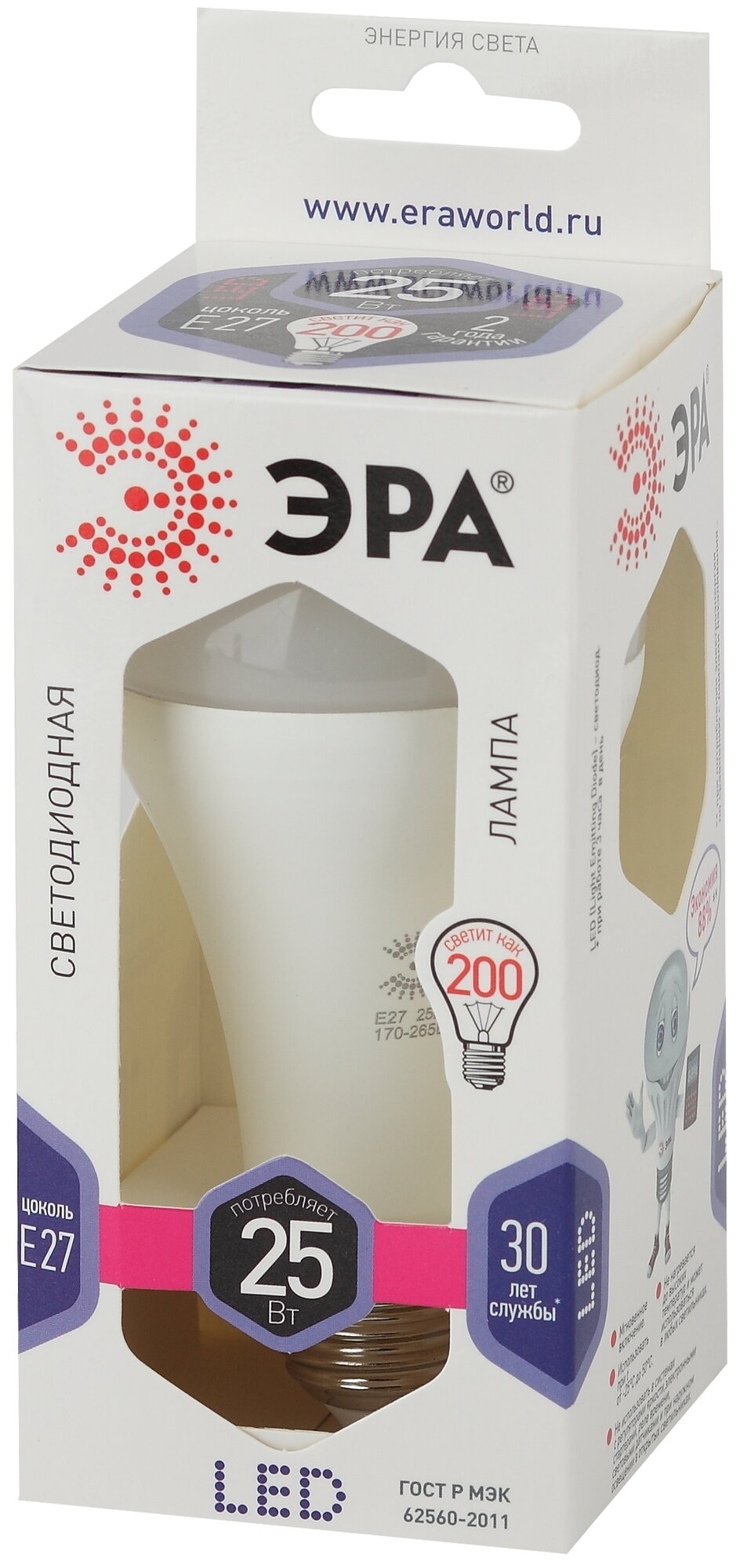 (12 шт.) Светодиодная лампочка ЭРА A65 25Вт 170-265В 6000К E27 2 832 ₽