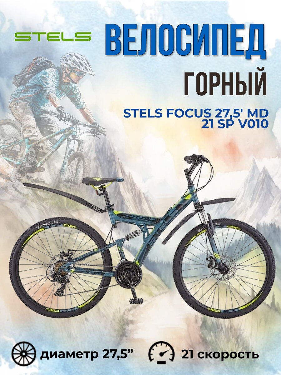 Велосипед Stels Focus 27,5' MD 21 sp V010 Серый/Желтый (LU089832), 19' информация: