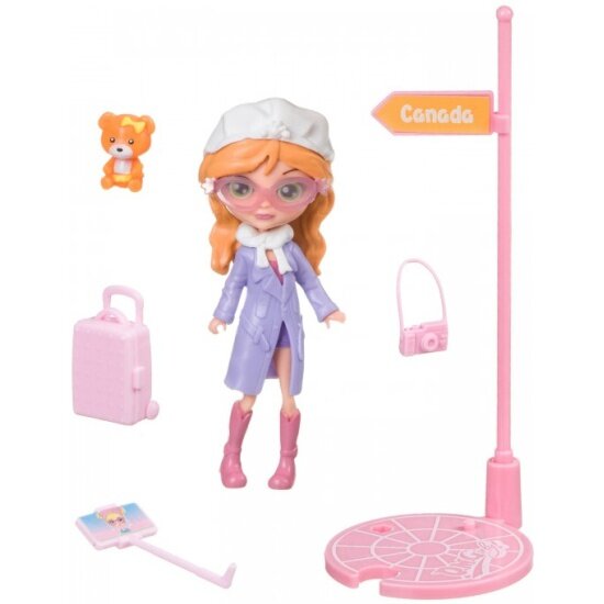 | Комплектация | - кукла; - одежда; - чемодан; - палка селфи с телефоном; - мишка; - фотоаппарат; - очки; - дорожный указатель. |