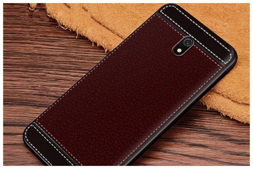 Отзывы на Чехол MyPads для Xiaomi Redmi 8 из качественного износостойкого силикона с декоративным дизайном под кожу с тиснением коричневый