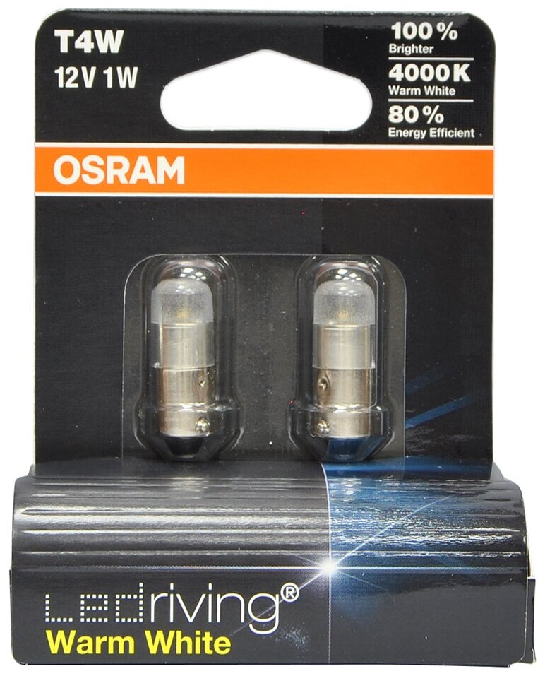 Лампа автомобильная Osram T4W (BA9s) LED Premium Warm White 4000K, 2шт, 12V, 3850WW-2бл .