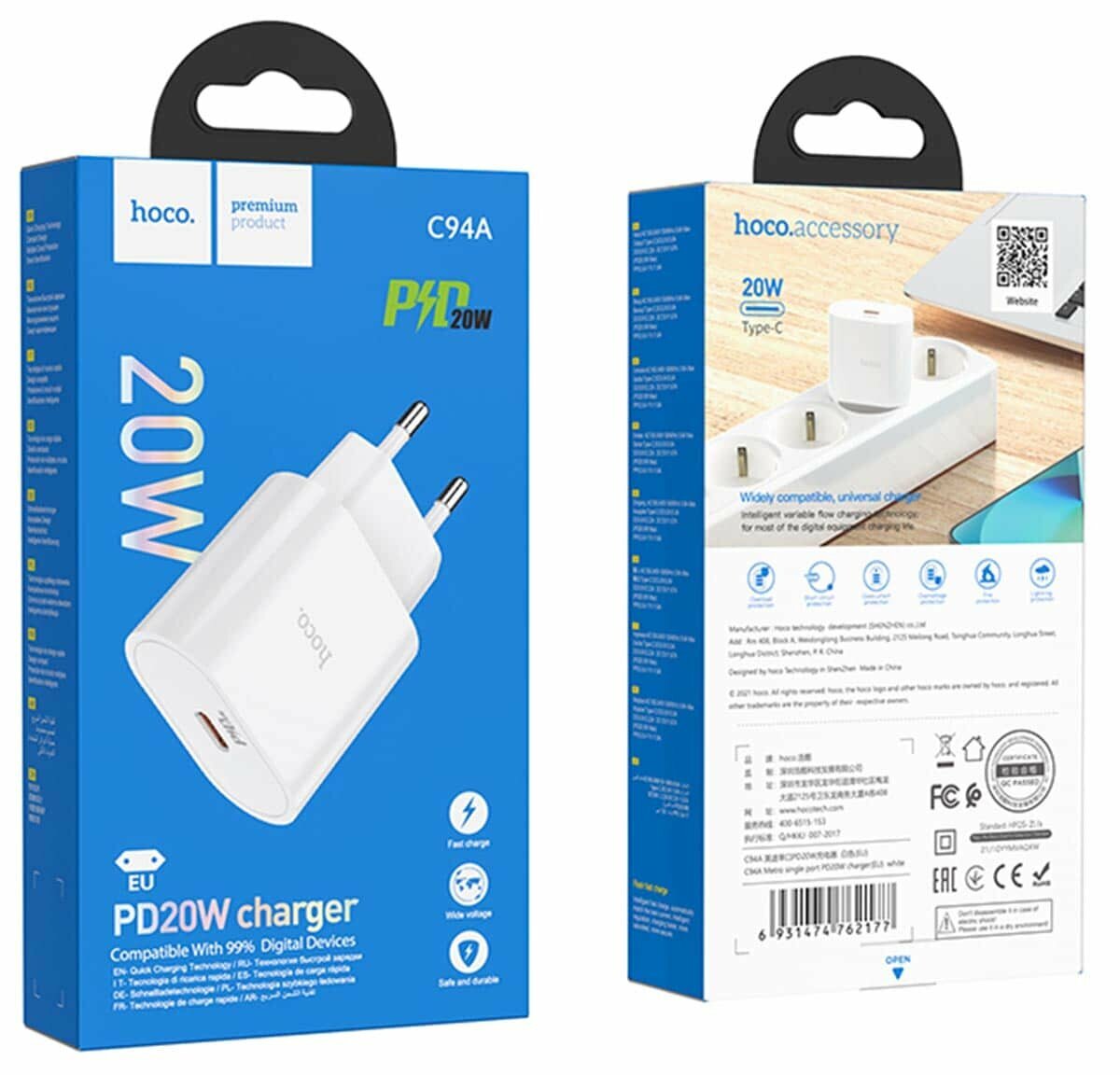 Сетевое зарядное устройство, 1 PD 20W (C94A), HOCO, белый